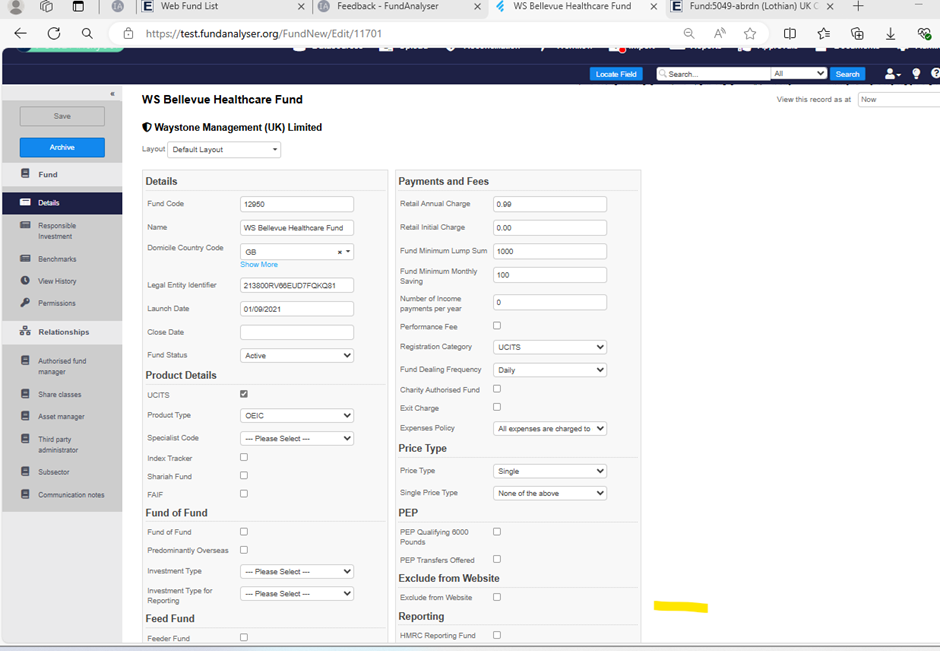 I note FundAnalyser Web fund lists ‘Data’ file includes Fund Code 12950 WS Bellevue Healthcare Fund’. On ECHO Live the fund attribute has been flagged ‘Exclude from website’. See screenshot for details.